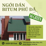 Ngói dán bitum phủ đá M-GREEN kiểu vân đá được cấu tạo từ bitumen phủ hạt đá tự nhiên, gia cố sợi thuỷ tinh....